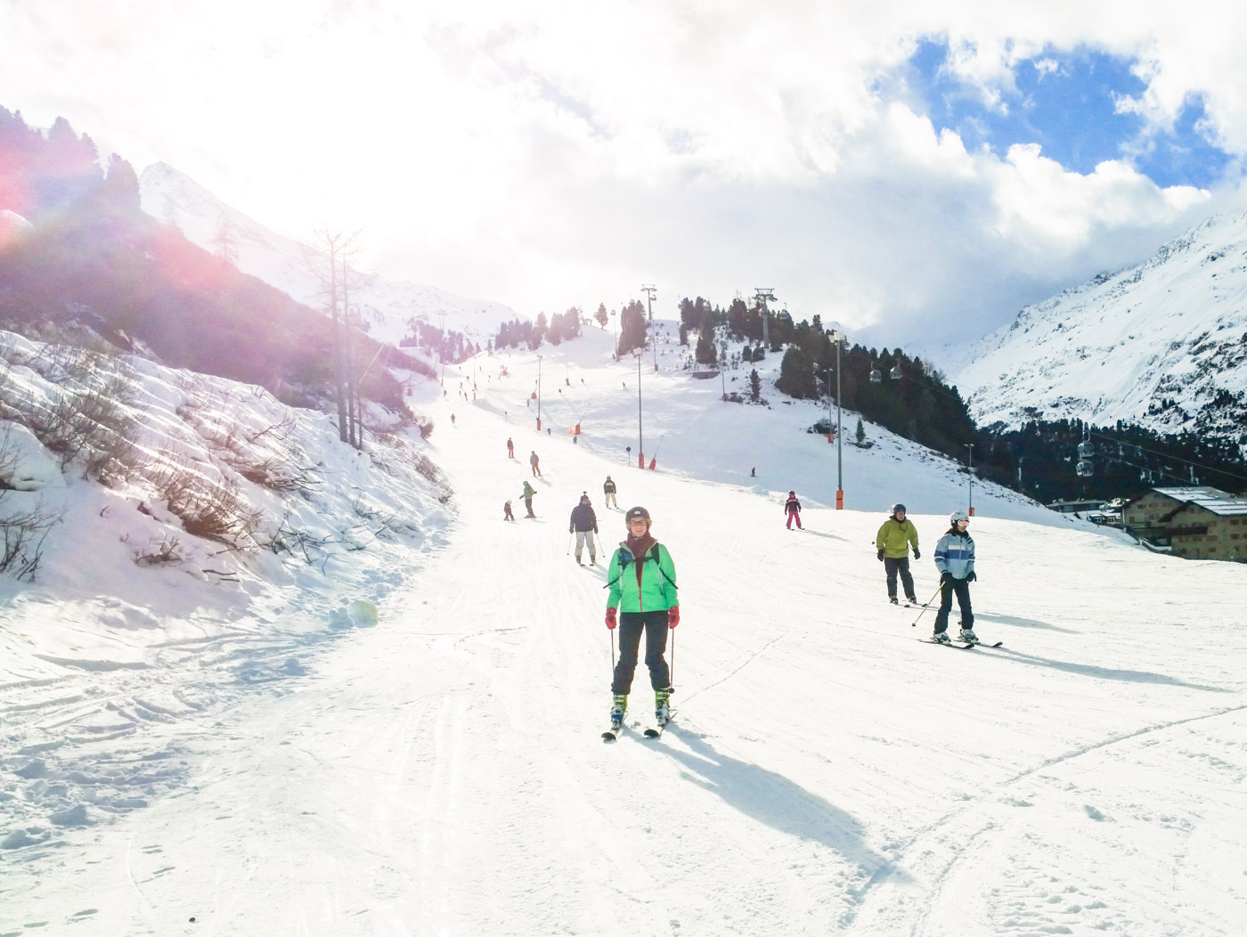 Wir haben letzteres dieses Jahr gemacht, und zwar in Sölden/Tirol. Da wir als Norddeutsche bisher noch keine sonderlichen Erfahrungen mit dem Skifahren gemacht haben, ging es gleich zu Anfang in die Skischule, am folgenden Tag dann direkt auf eine leichte Piste.
